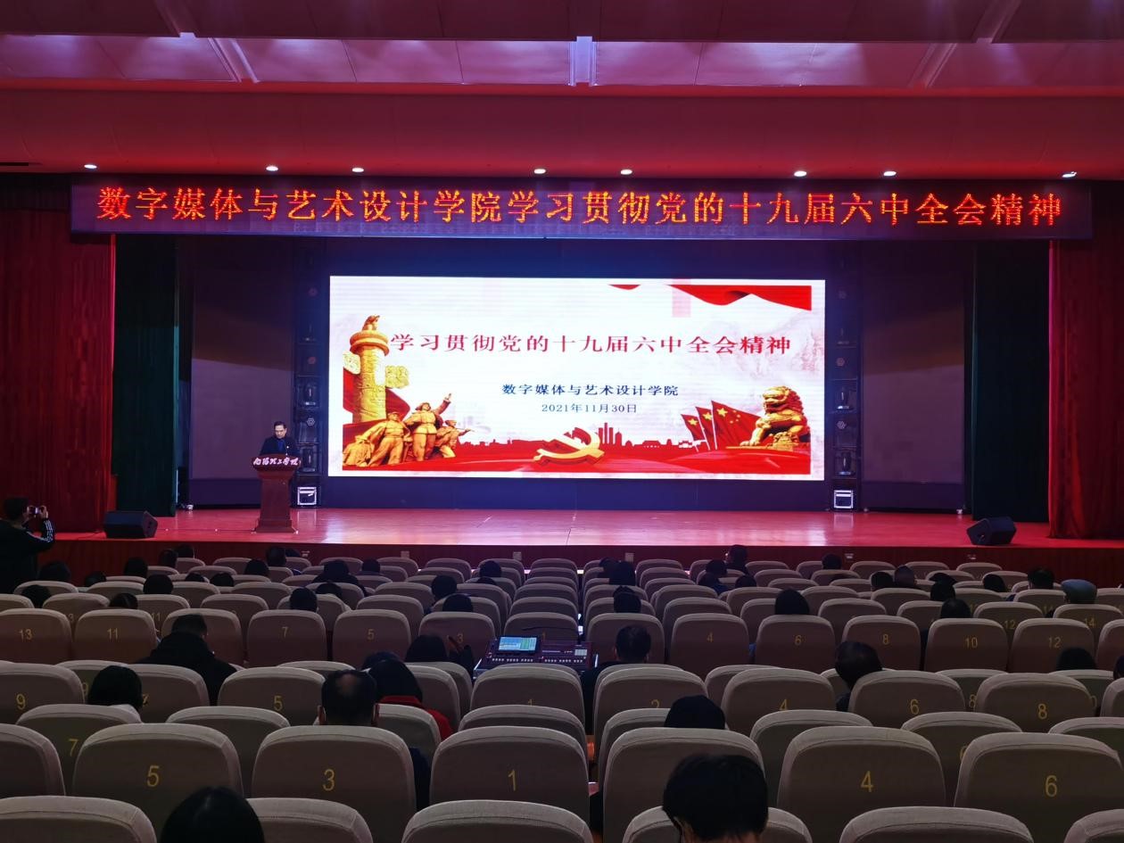 本网讯(特约记者/张睿)11月30日下午,数字媒体与艺术设计学院在毕业大厅召开学习宣传贯彻党的十九届六中全会精神大会,学院全体师生党员和入党积极分子参加会议。