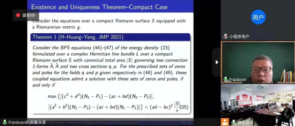 报告会上,韩小森教授分享双测度调和映射模型中一类非线性偏微分方程涡旋解的存在性定理这一最新研究成果。武新乾教授讲述统计学发展历程中的代表人物,重要的统计学方法,统计学的应用场景及大数据时代统计学的发展前景。解俊山教授讲述一种海量多元数据相互独立性的分布式测试新方法。龚克副教授分享数论的由来,数论研究的典型问题,数论发展的功勋人物,以及数论对现代密码学的作用。