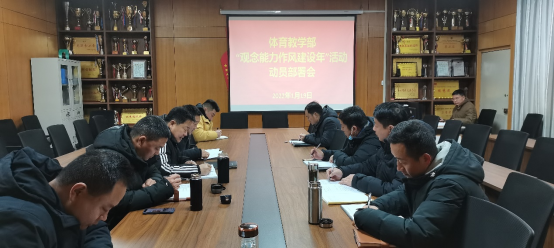 本网讯(特约记者/华道勋)1月19日上午,体育教学部召开“观念能力作风建设年”活动动员部署会,部领导班子及科级以上干部参加会议,会议由部党总支书记张金梁主持。