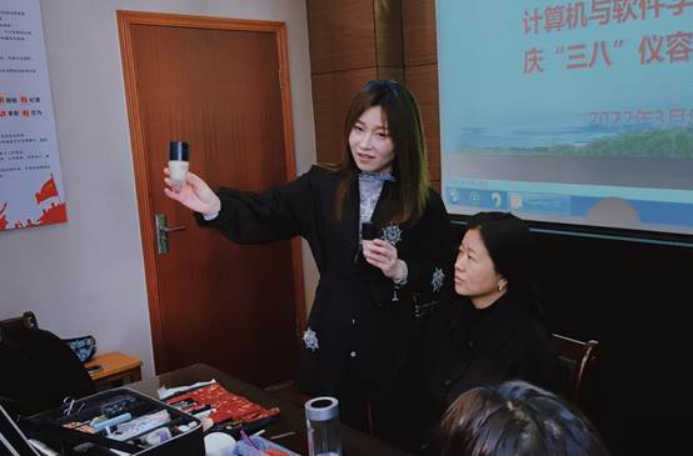 3月8日上午,计算机与软件学院分工会举办“展礼仪风采 树文明形象”庆“三八”仪容仪表知识讲座,邀请南阳市卡米拉文化传媒有限公司高级化妆师为女教师们传授化妆技能,老师们现场纷纷拿出工具亲自实践,活动轻松热烈,充满欢声笑语。女教师们纷纷表示,将以良好的精神风貌和饱满的热情投入到今后的工作中,展现“巾帼不让须眉”的靓丽风采。