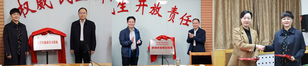 李存与梁玉振共同为“大学生就业实习基地”揭牌,并与南阳日报社签署“新媒体发展实验室”建设协议;刘书营与梁玉振共同为“新媒体发展实验室”揭牌;同时,传媒学院还聘请梁玉振、冯兴阁等为“业界导师”。