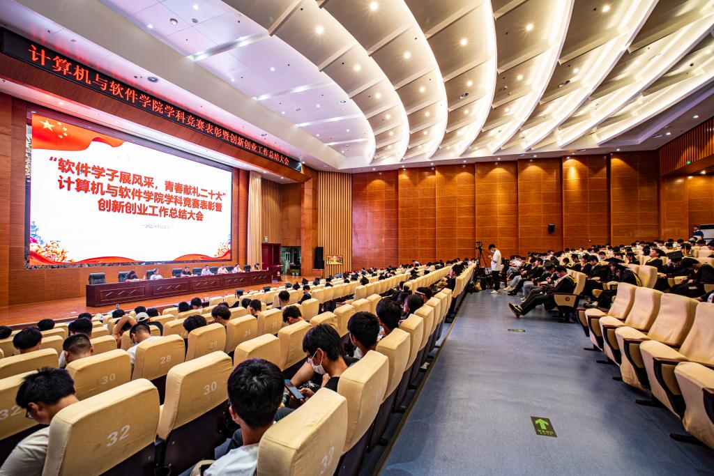 本网讯(特约记者/陈可)5月31日晚,计算机与软件学院在第三报告厅举办以“软件学子展风采,青春献礼二十大”为主题的学科竞赛表彰暨创新创业工作总结大会。学生工作处负责人、计算机与软件学院领导班子全体成员以及受表彰集体、个人代表和毕业生代表参会。大会由计算机与软件学院党委副书记主持。