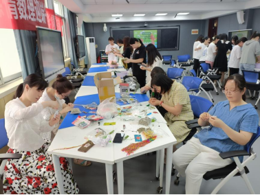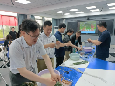 本次活动围绕端午节民间传统习俗特征,引导师生认知、尊重、继承和弘扬传统文化,一起参与包粽子、缝制香囊、编织五彩绳等活动。大家纷纷拿出看家本领,一捋一填,压紧扎捆,包出美味粽子;一钩一锁,细针轻舞,织出祈福香囊;一折一缠,巧手穿梭,编出五彩绳。