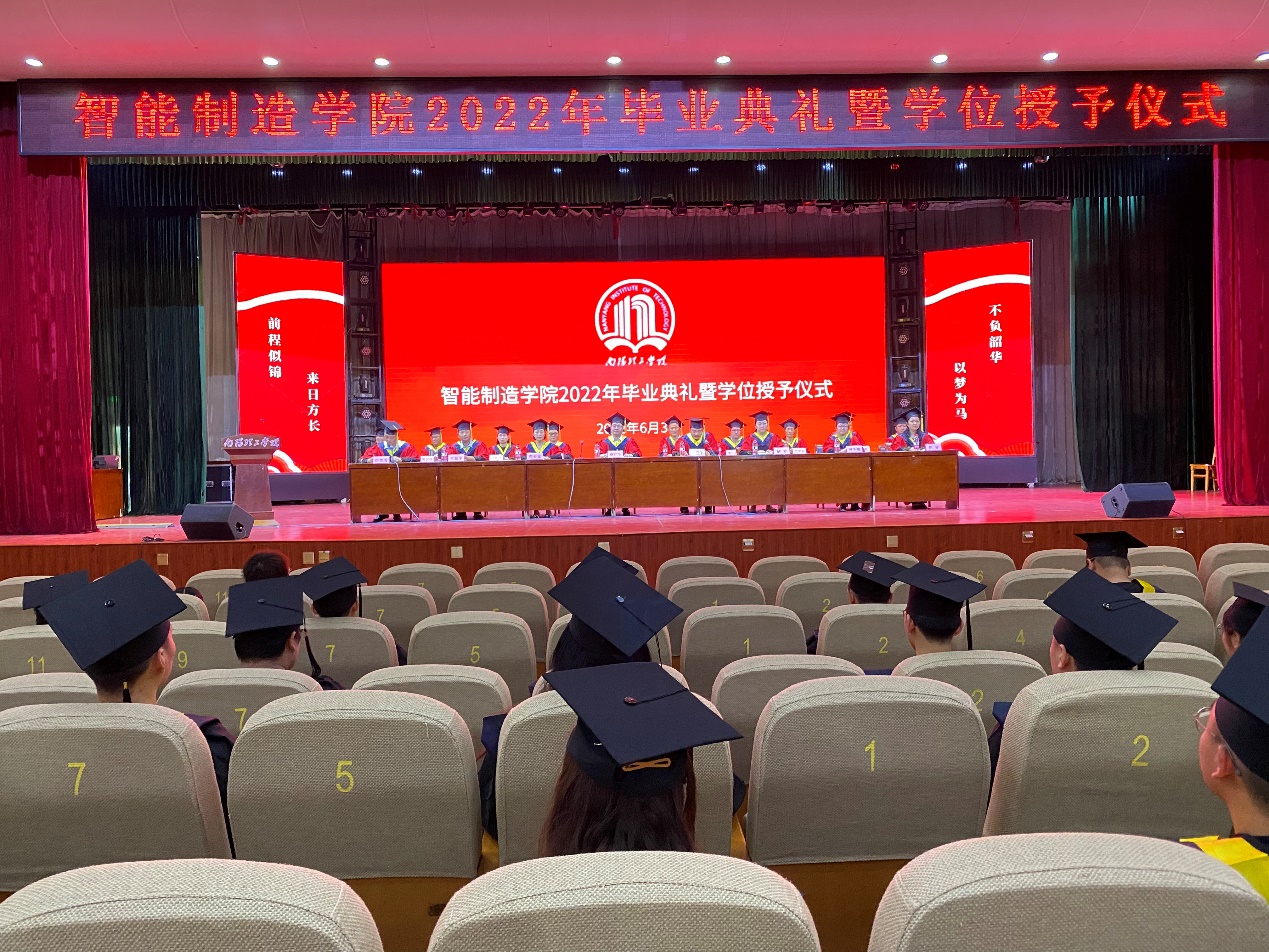 6月3日,智能制造学院2022年毕业典礼暨学位授予仪式在毕业大厅举行。学院领导班子、教师代表和2022届毕业生代表参加典礼。此次毕业典礼通过微博平台面向校外2022届毕业生同步直播。