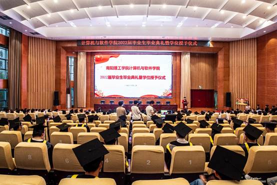 典礼在毕业生代表的快闪歌曲中圆满落幕。据悉,计算机与软件学院2022届毕业生共有876人,其中近80人成功考研,17名同学被授予省级“优秀毕业生”荣誉称号,117名同学被授予校级“优秀毕业生”荣誉称号。