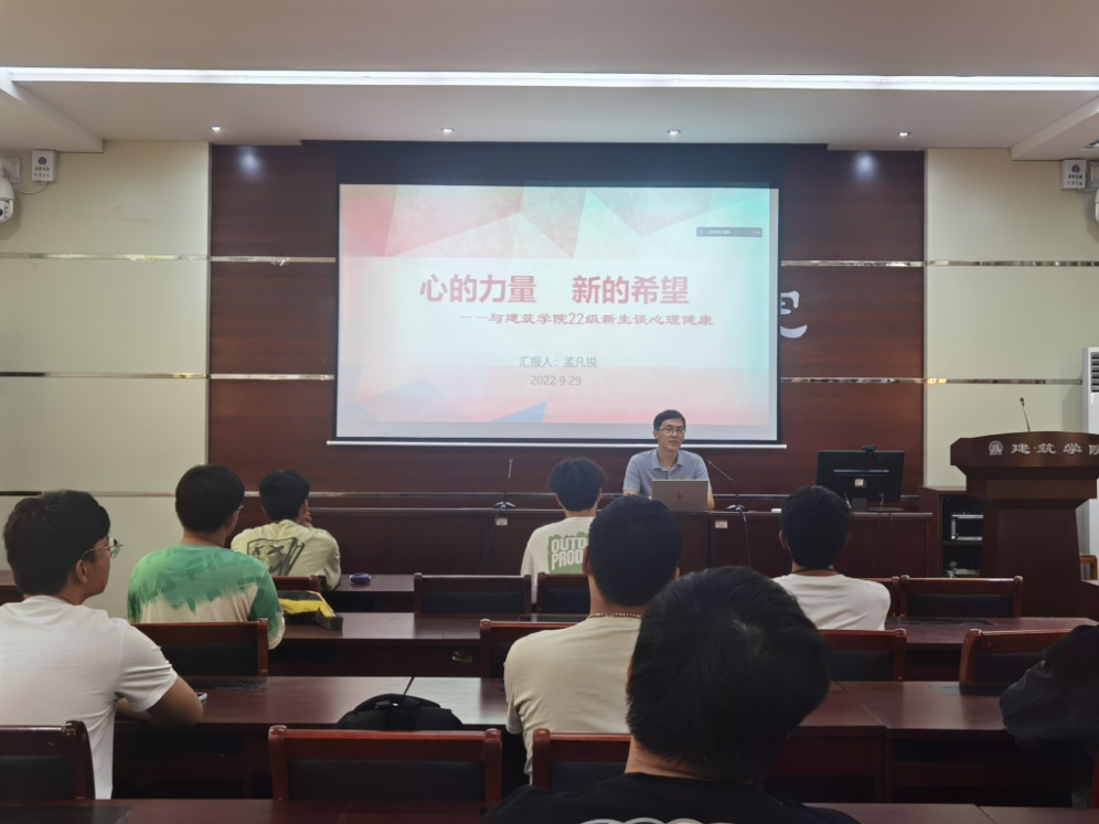 本网讯(特约记者/田真 学生记者/王晨) 为增强学生对心理健康问题的重视,积极应对大学期间可能遇到的各种心理压力,9月29晚,建筑学院特邀我校心理健康教育中心孟凡锐老师为2022级新生做“心的力量 新的希望”心理健康专题讲座。