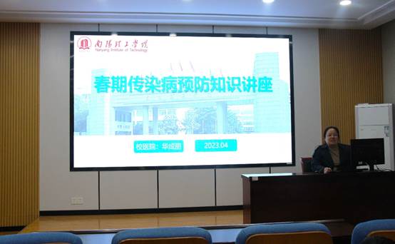 本网讯(特约记者/何雷雨 学生记者/赵昊)为宣传传染病预防知识,提高学生防范意识,切实保障学生健康安全。4月26日,教师教育学院在东校区师苑大讲堂开展春期传染病预防知识讲座,校医院华成丽担任主讲。