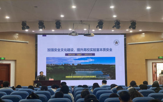 会议分别邀请了教育部实验室安全检查专家吴祝武教授和郑州大学实验室管理中心主任马国杰教授作相关报告。吴祝武教授报告题目为《新形势下加强高校实验室安全工作探讨》,吴教授结合工作经验,对实验室安全从国家政策、事故案例、已有检查数据分析等进行了系统讲解。报告内容丰富,数据详实,对我校实验室安全管理工作有较好的借鉴作用。