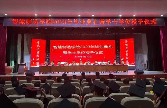 本网讯(特约记者/李媛)6月12日上午,智能制造学院2023年毕业典礼暨学士学位授予仪式在毕业大厅隆重举行。副校长蔡广宇、学院领导班子、教师代表、全体辅导员、2023届全体毕业生以及在校生代表参加典礼。