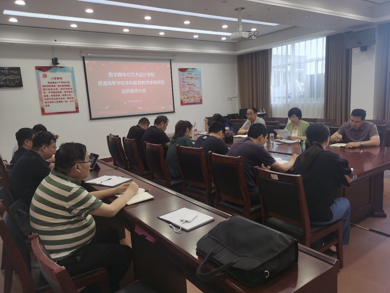 本网讯(特约记者/宋弘)为了进一步深入开展学习贯彻习近平新时代中国特色社会主义思想主题教育,6月21日,数字媒体与艺术设计学院召开迎接本科教育教学审核评估党员干部誓师大会。