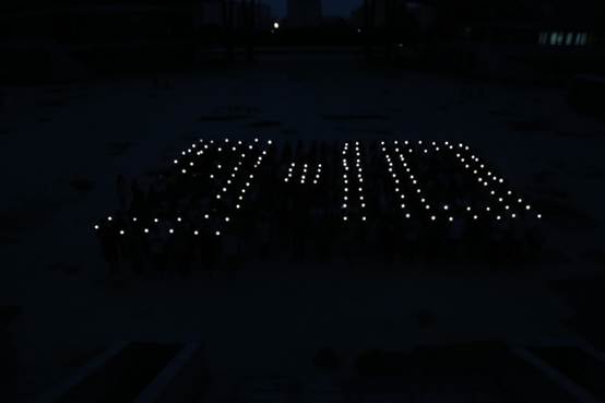 夜幕降临后,同学们来到东校区礼仪广场,排好队形,打开手电筒,“9.10”灯光汇聚的数字点亮夜空,并唱响歌曲《桃李》。南工学子以独特的方式致敬辛勤耕耘的老师,表达对崇高教育事业的热爱。