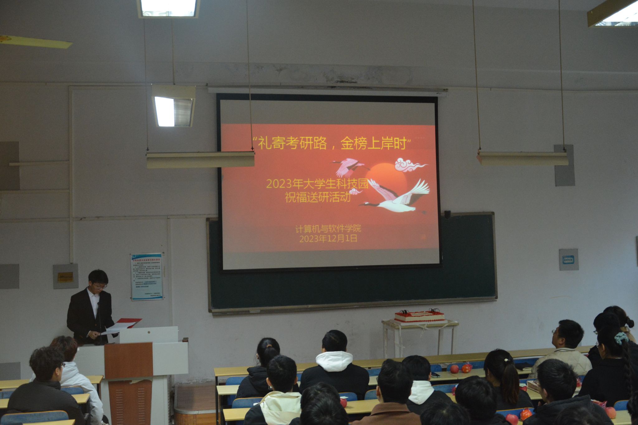 本网讯(特约记者/陈可)12月1日下午,计算机与软件学院举办以“礼寄考研路,金榜上岸时”为主题的2023年大学生科技园祝福送研活动。学院部分领导、教师代表莅临活动现场,为考研同学们送上祝福。