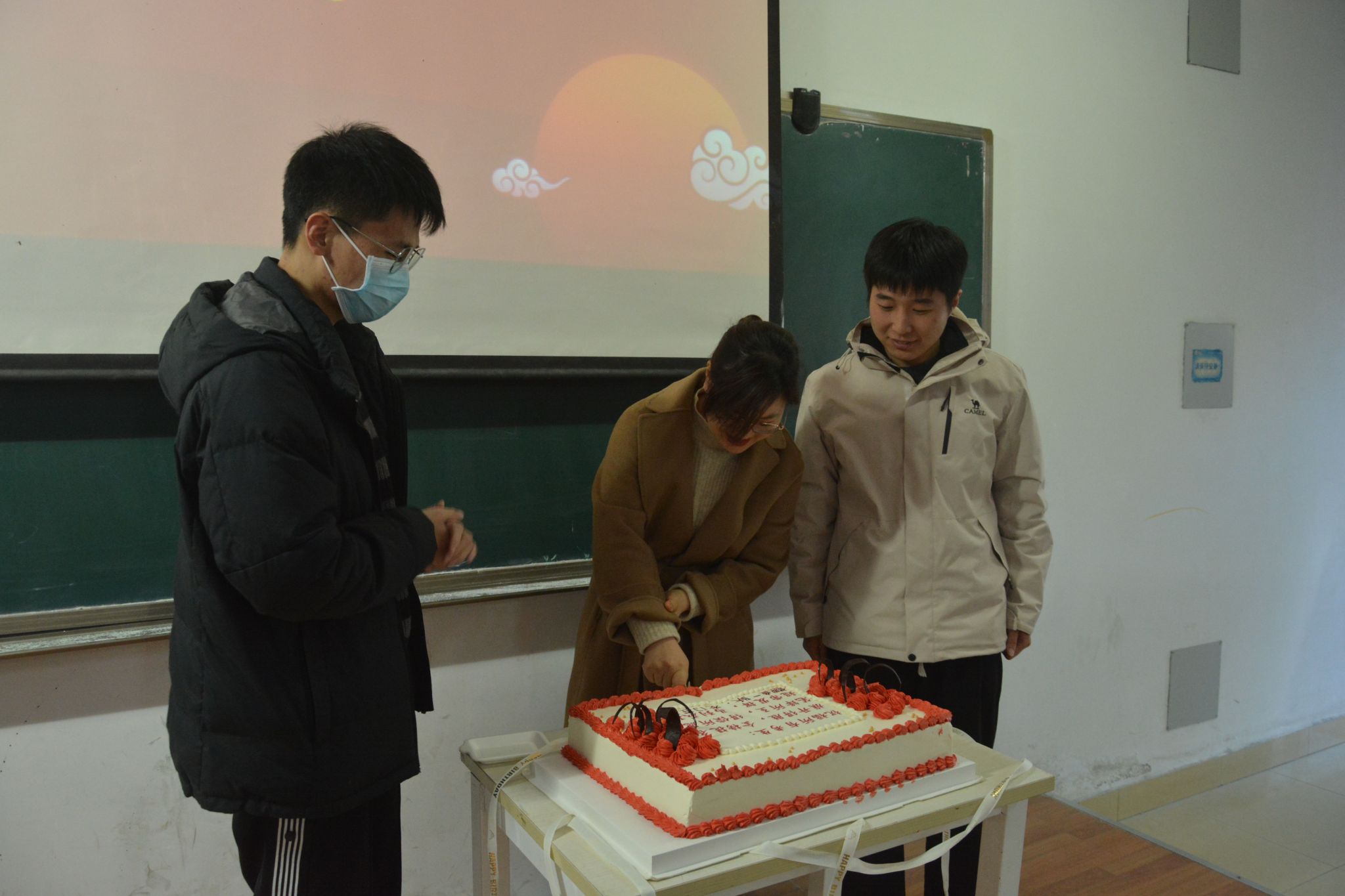 学院相关负责人为考研同学们切蛋糕。(校对/闫恒瑜 审核/祝孔涛 责编/谭萌)