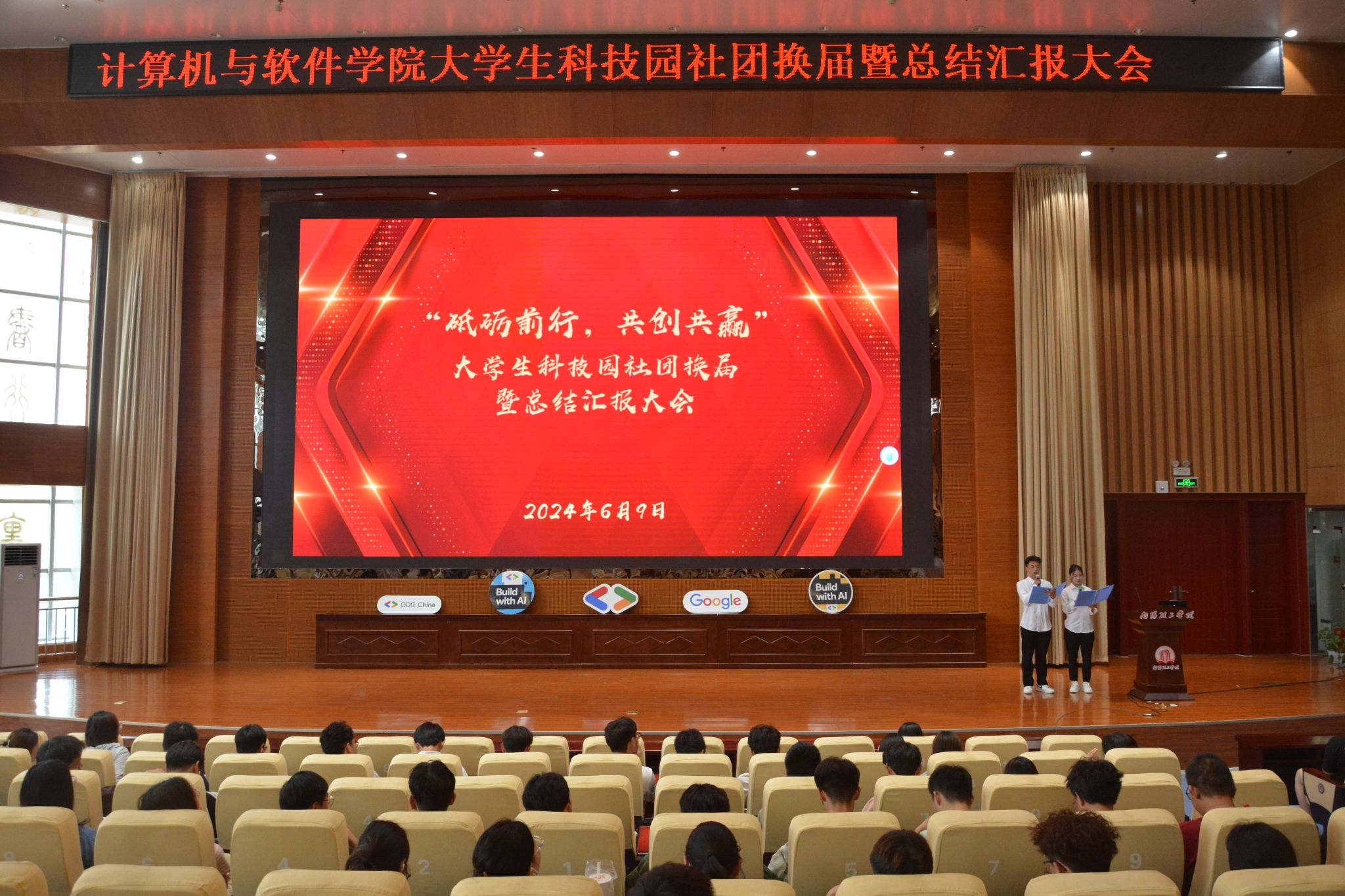 本网讯(特约记者/陈可)6月9日,计算机与软件学院大学生科技园成功举办以“砥砺前行,共创共赢”为主题的社团换届暨总结汇报大会。学院相关教师代表、学生代表、各社团成员参加大会。
