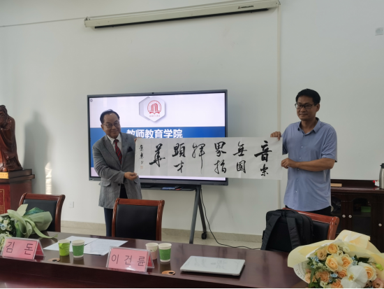 金墩介绍韩国音乐教育发展现状、大学音乐专业课程设置及合唱指挥专业教学实践模式。他表示,非常期待加强中韩两国音乐教育界的联系与合作,通过教师交流、学生合作演出等活动,共同推动两国音乐教育发展。