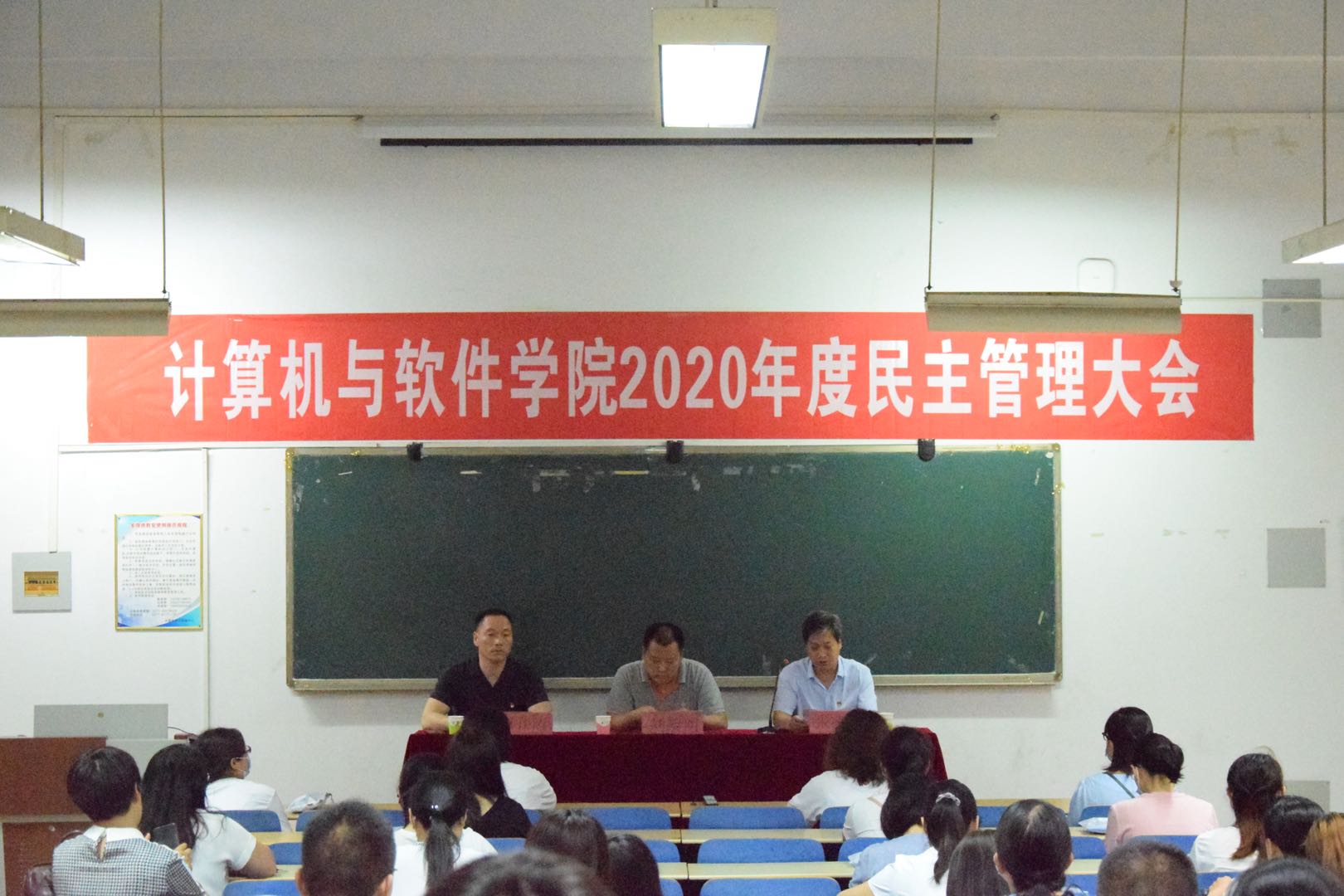 本网讯(特约记者/陈旭)6月2日下午,计算机与软件学院在14号教学楼106教室召开2020年度民主管理大会,院长刘黎明、党委书记祝孔涛、副院长张凌晓及全院教职工参加会议。张凌晓主持大会。