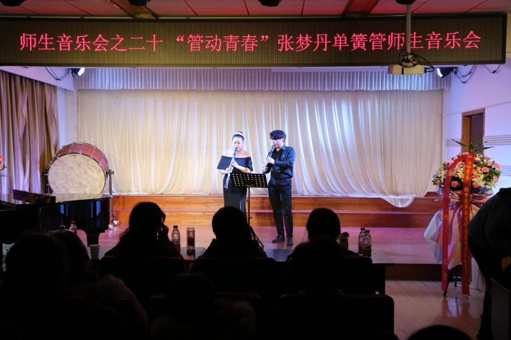 音乐会上,张梦丹老师与学生合奏了《莫扎特单簧管二重奏小曲两首》《A大调单簧管协奏曲第一乐章》、韦伯《引子主题与变奏》、皮亚佐拉《NightClub1960》《遗忘》等多首国外音乐精品,师生配合默契,演奏旋律优美,展示了器乐师生扎实全面的艺术功底。王麓茗、周俊良、黄龙辉、卢宏达的《迎新春舞曲》《牧马之歌》、《苏北调变奏曲》《魔女宅急便》,技巧成熟、情感真挚,令观众享受其中。而星瀚管乐团演奏的《拉德斯基进行曲》更是将本场音乐会推上了高潮。