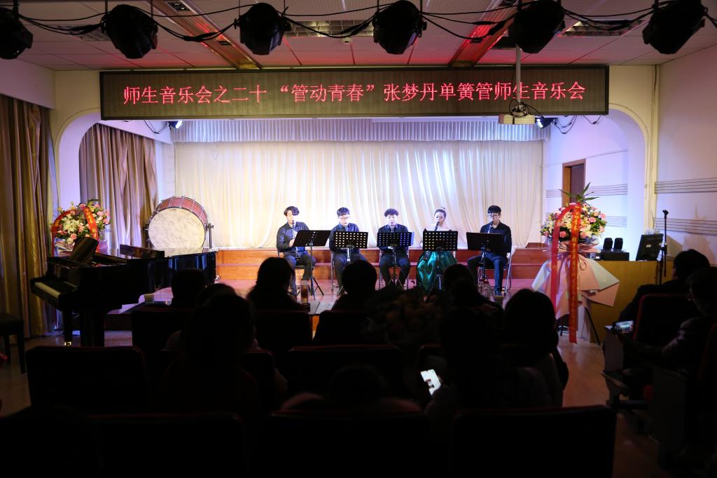 本网讯(特约记者/林芳芳)管弦和鸣辞旧岁,师生合奏谱新篇。12月27日晚,“管动青春”——张梦丹单簧管师生室内音乐会在207多功能厅举办。音乐学院领导班子、业内同行及部分师生观看了本场演出。这也是音乐学院本年度最后一场师生音乐会。
