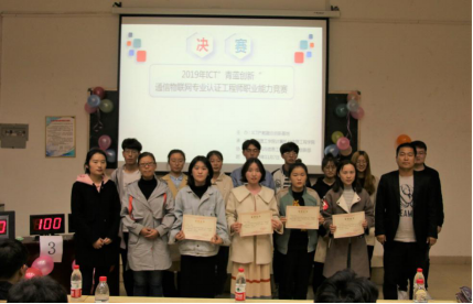 本网讯(特约记者/张露 丁欢)11月7日晚,由计算机与信息工程学院主办、ICT产教融合创新基地承办的第四届ICT“青蓝创新”通信物联网专业认证工程师职业能力竞赛决赛在七阶101教室举行。