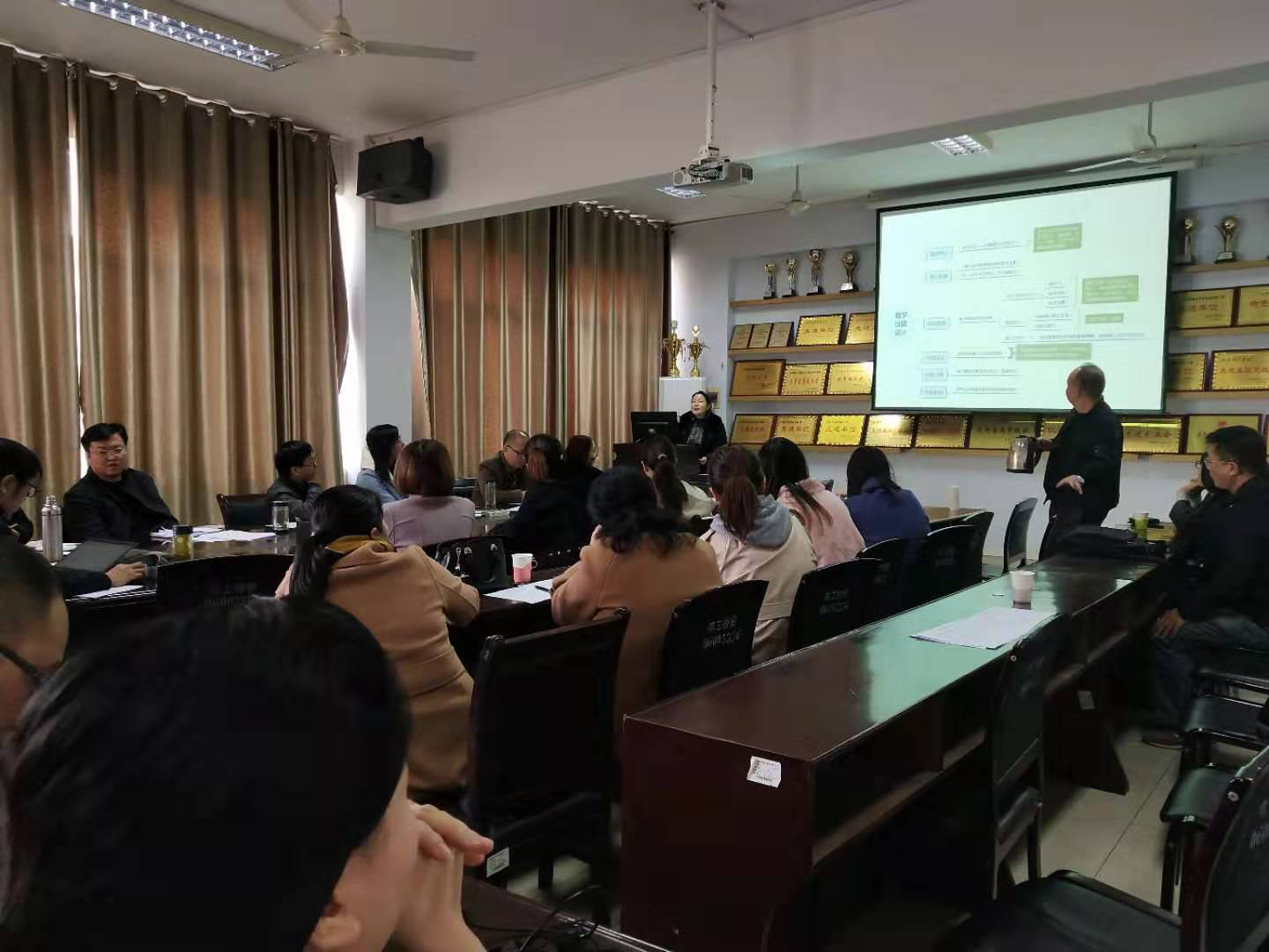 七位主讲老师围绕“课程思政”这一主题,结合自己的课程教学实践,从教育理念的创新到教学方法的革新进行了全面而深入的探讨。大家一致认为,思政教育元素要像盐溶化到汤里一样,让学生从“汤”里品出“盐”的滋味。我们要寻找好的思政切入点,把思政元素巧妙地融入教学设计中,讲好中国故事,讲出中国声音。他们的观点深入浅出,案例典型丰富,赢得了在场教师的阵阵掌声。