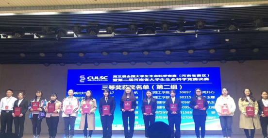 本网讯(学生通讯员/周开心)10月25日至27日,全国第三届大学生生命科学竞赛暨第二届河南省大学生生命科学竞赛决赛在信阳师范学院举办。来自郑州大学、河南大学、河南师范大学等高校的121个学生团队进行了第二届河南省大学生生命科学竞赛决赛的角逐,由我校生物与化学工程学院组建的团队在决赛中表现优异,获得三等奖一项。