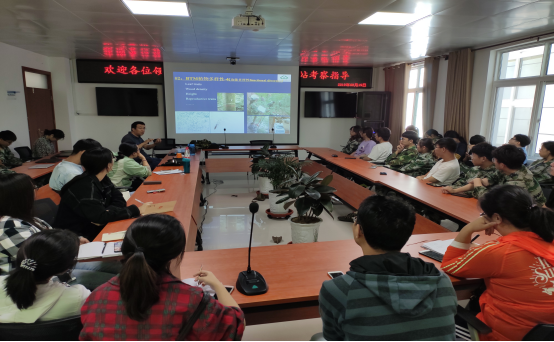 29日上午,师生一行与中国科学院植物所杜晓军博士及其团队学生进行了学术交流。杜晓军对国内外大型森林样地概况及宝天曼大样地研究平台的选址、建立方法和技术以及已开展的相关科研项目进行了介绍,郭书贤教授介绍了本团队目前开展的主要科研工作,并做了“南阳地区土壤中酵母菌多样性及其利用”的学术报告,对南阳地区酵母多样性与我国其他部分地区进行了对比,并对可同步利用五碳糖和六碳糖的菌株ZZ-46进行了详细介绍。杜晓军表示,愿意同生化学院师生一起在大样地的生态系统检测、微生物资源开发与利用等方面开展深入合作。