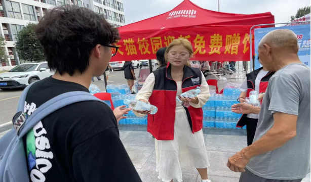 活动一“迎新现场免费赠饮”:9月6日-8日,后勤服务中心携手天猫校园超市在体育馆东侧迎新现场开展“免费赠饮”活动,向新生及家长赠饮200箱矿泉水约3000余人次。
