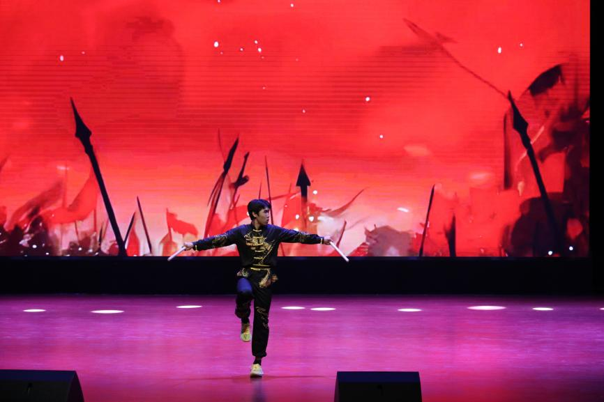 精彩的武术表演《精忠报国》将晚会推向高潮,24新能源的张语涵同学以矫健的身姿和精湛的技艺,赢得现场观众的阵阵掌声。琵琶弹唱《声声慢》《金蛇狂舞》让人耳目一新,24统计学张涵同学用精湛的琵琶技艺和甜美的歌声,展现中华传统文化的魅力。晚会在一曲集体大合唱《我和我的祖国》中圆满落幕,学院师生用歌声表达对祖国的热爱和祝福。(校对/冯清 审核/郭学军 终审/鲁静薇)