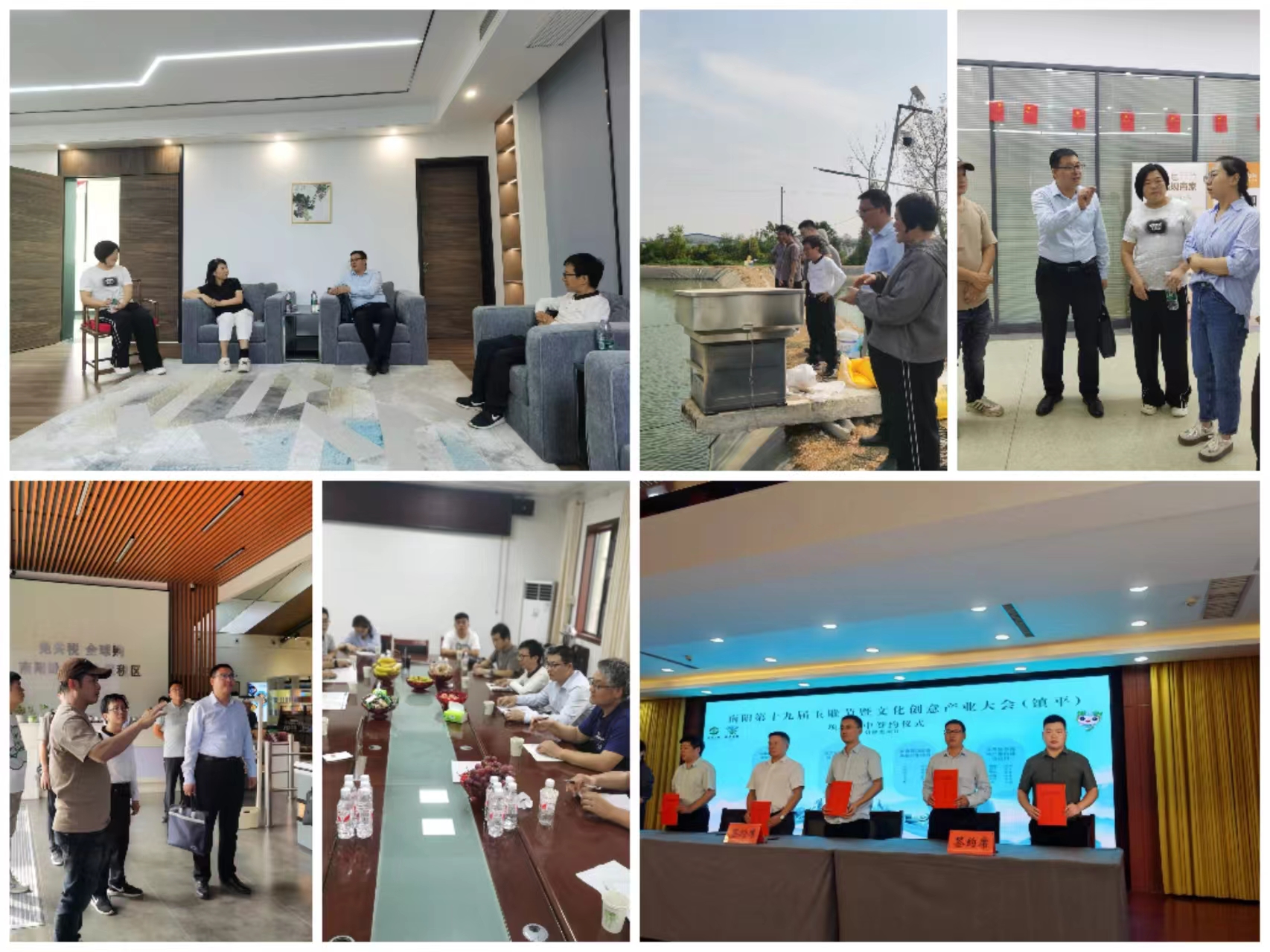 考察组赴长彦观赏鱼文化产业园实地考察观赏鱼产业,围绕观赏鱼产业发展、观赏鱼直播带货等内容提出建设性建议;前往河南沃本农业科技有限公司双孢菇生产基地、肉牛养殖基地、有机肥加工基地、锦鲤养殖场、电商直播间等地开展实地调研,在侯集镇政府举行的座谈会上就河南沃本农业科技有限公司的产业发展规划、项目申报、形象提升、电商直播等领域达成系列合作意见;深入梧桐树新型经济产业园洽谈校企合作,围绕共建玉产业商务数据分析研发中心、产学研合作、实习创业就业基地建设等内容达成合作意见,并实地考察产业园的数字化多功能中心、抖音电商直播基地、梧桐里全球购、视频号质检服务中心等功能机构。