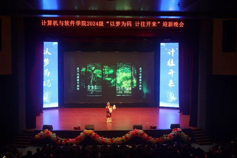 本网讯(学生记者/王佳瑶)11月17日,计算机与软件学院在东校区音乐厅举办2024级迎新晚会,为新生们带来了一场精彩纷呈的文化盛宴。晚会节目内容丰富,包括舞蹈、歌曲、话剧、相声以及传统豫剧等。