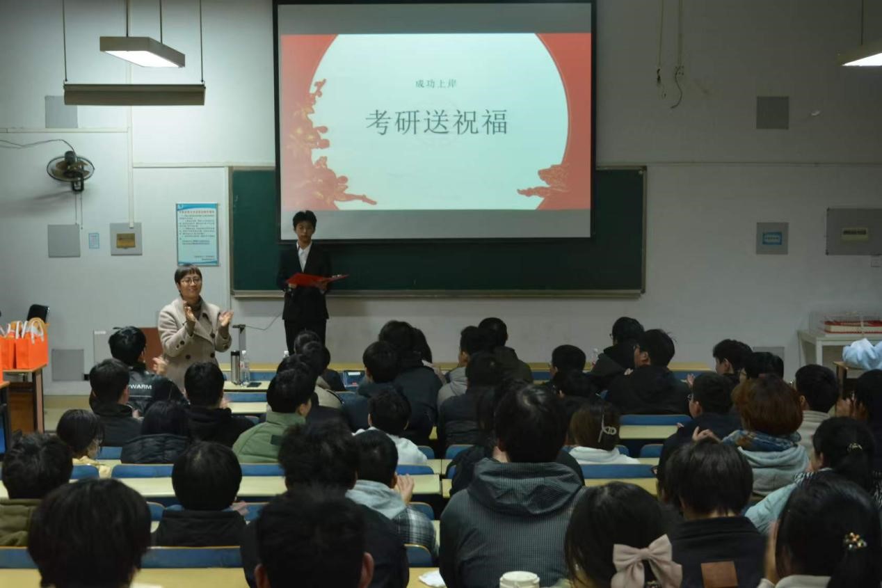 活动最后的切蛋糕仪式将现场气氛推向高潮,精美的蛋糕上写着有关考研加油的话语,象征着对考研学子的美好祝愿。整个活动充满积极向上的正能量,展现学校对考研学子无微不至的关怀与重视,以及学子之间互帮互助、共同进步的深厚情谊。(校对/陈旭 审核/赵东江 编辑/鲁静薇)