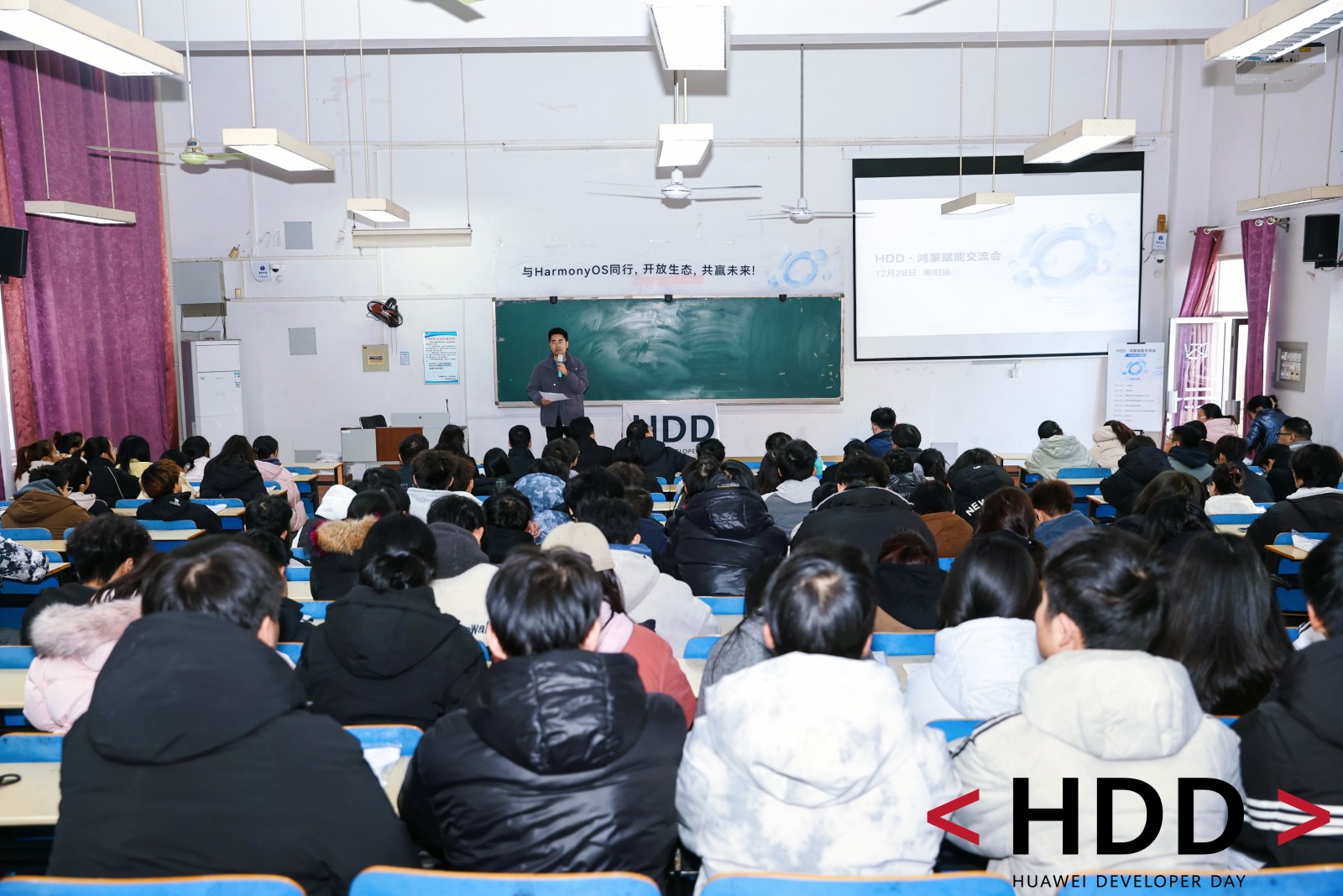 本网讯(特约记者/单平平)12月28日,计算机与软件学院举办华为HDD鸿蒙赋能交流会(南阳站),吸引了近200名学生参与。此次活动旨在推动鸿蒙生态持续发展,深化产教融合,并为信息技术产业培养更多优秀人才。