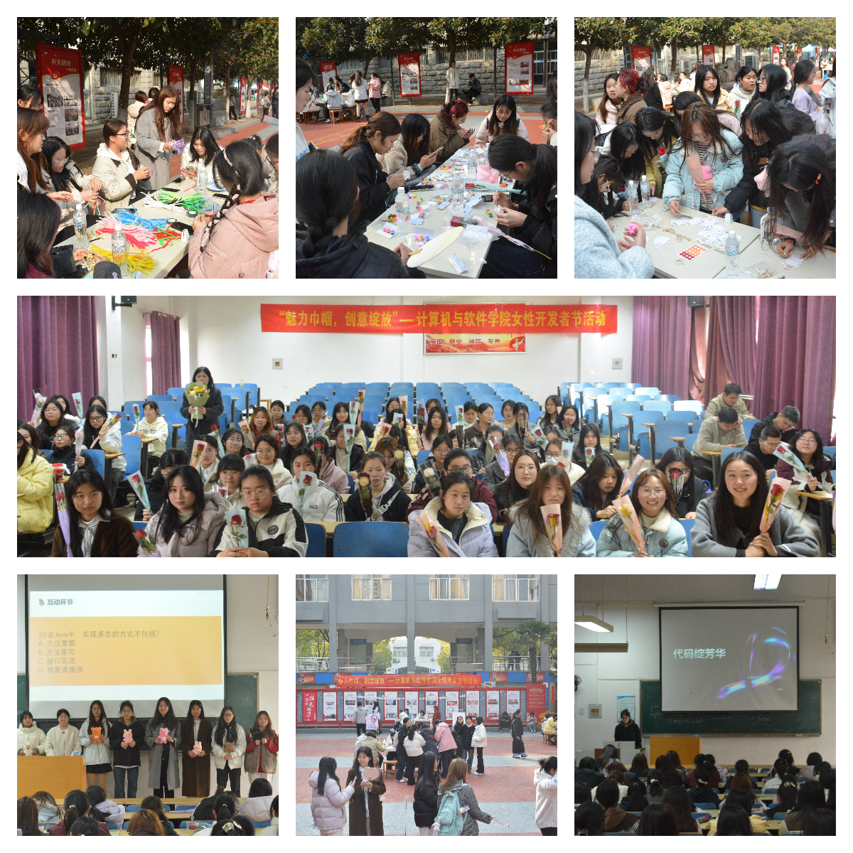 本网讯(特约记者/陈可)3月8日下午,计算机与软件学院在东南校区14号教学楼前广场举办以“魅力巾帼,创意绽放”为主题的女性开发者节活动,为学院在校女生带来一场充满创意与温情的节日盛宴。