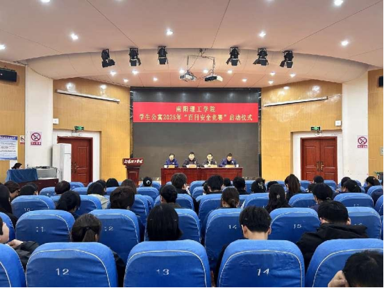 本网讯(特约记者/李骏)3月13日下午,安博官方网页版在学校第二报告厅举办学生公寓“百日安全竞赛”启动仪式。活动邀请南阳市消防救援支队防火监督科王润宇开展专题讲座。保卫处、后勤服务中心相关同志,楼层长同学代表共一百余人参加会议。