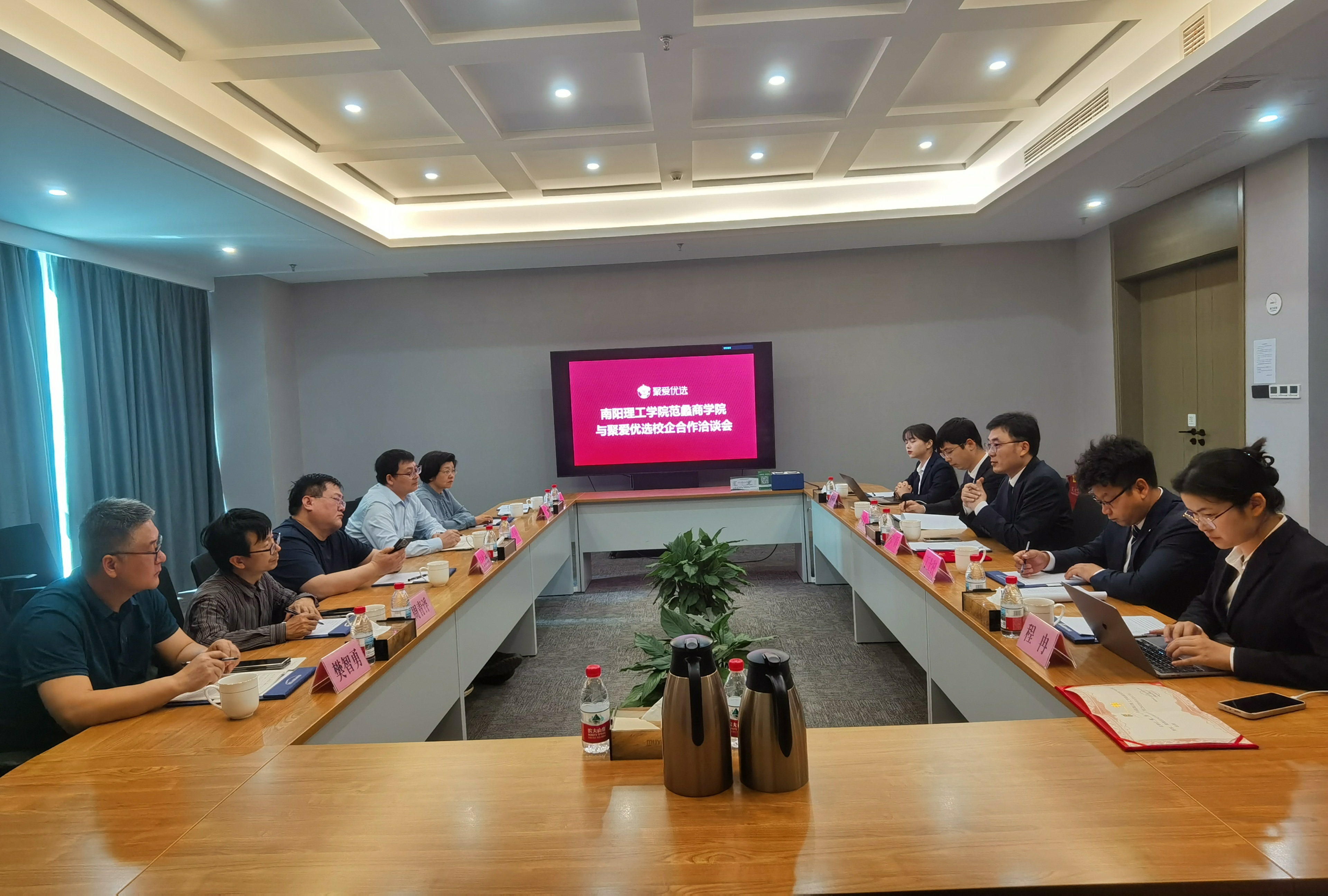 本网讯(特约记者/李浩 通讯员/江秋怡)4月16日,范蠡商学院赴河南省聚爱数字科技有限公司举行校企合作洽谈会。河南省聚爱数字科技有限公司总经理苏磊,范蠡商学院党委书记闫合占、院长郭永奇等出席会议。