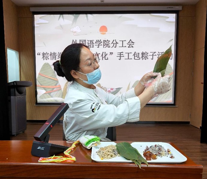 本网讯(特约记者/来蔓均)5月27日,外国语学院组织开展“粽情端午 传承文化”手工包粽子活动。