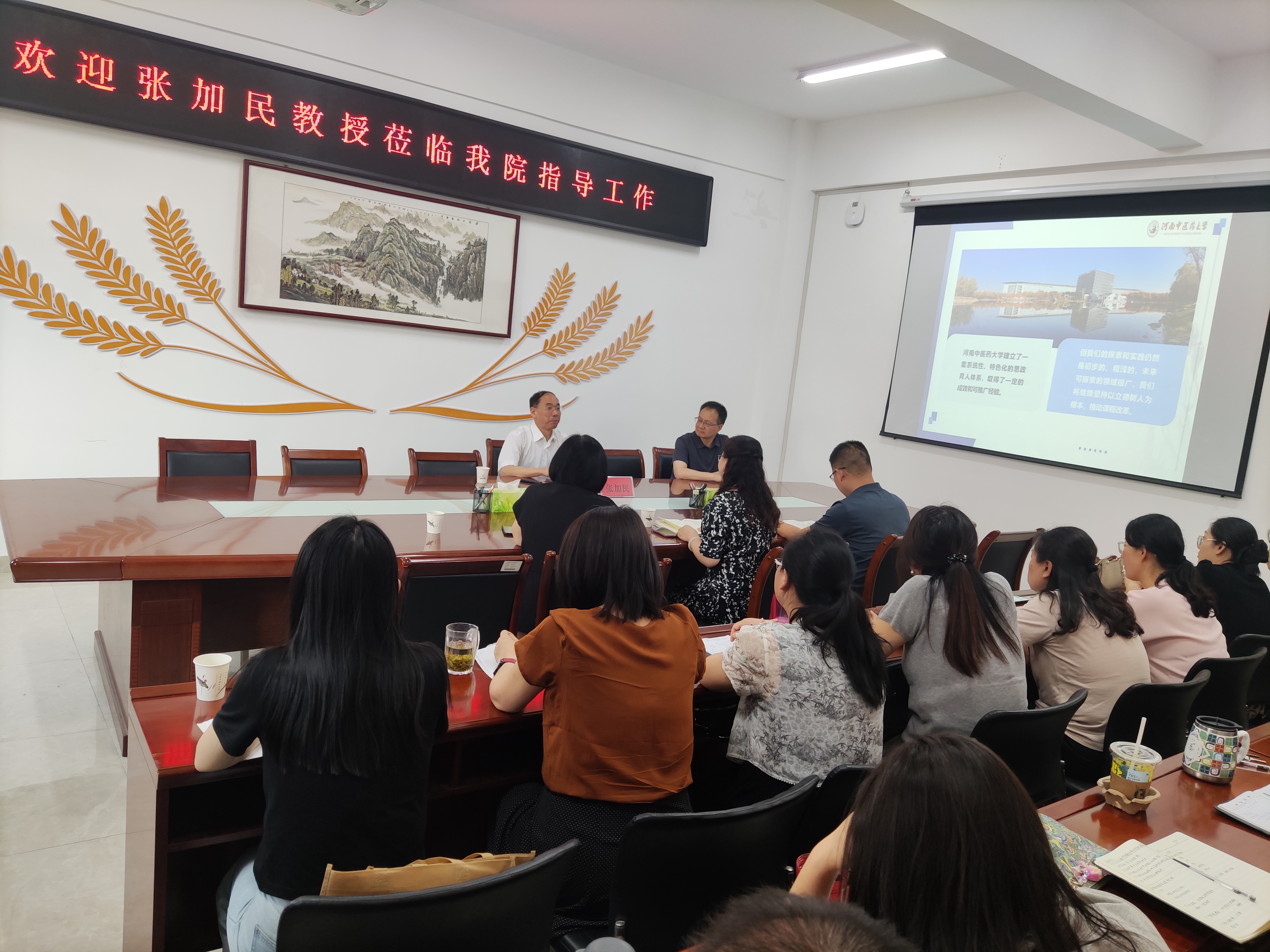 本网讯(特约记者 崔俊阁))6月5日下午,外国语学院举办外语专业课程思政路径探索研讨会,河南中医药大学张加民教授应邀作专题报告。副校长蔡广宇、学院领导班子、各教研室主任及骨干教师等参加报告会。