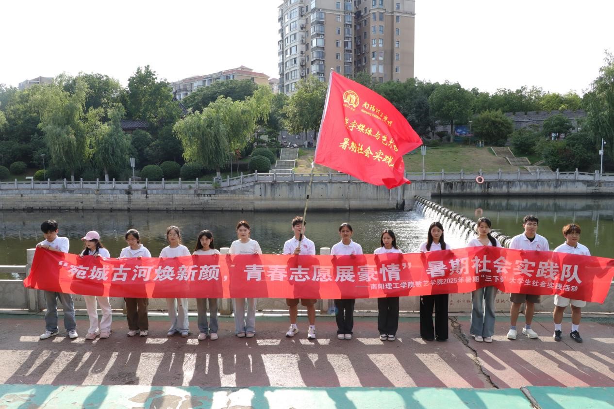 “宛城古河焕新颜,青春志愿展豪情”社会实践队前往南阳市区护城河、梅溪河、温凉河开展暑期社会实践活动。实践队成员们不畏酷暑,沿着河道仔细清理垃圾,向周边居民宣传环境保护、防溺水等知识,摆放手绘创意安全标语牌。使大学生们从“校园里的学习者”蜕变为了“社会中的行动者”,带动更多居民致力于宛城古河生态环境保护。