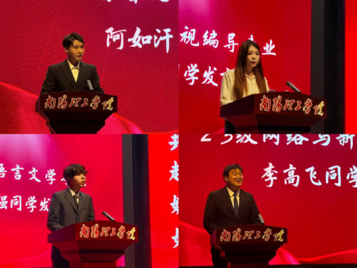 2023级播音与主持艺术专业阿如汗、2022级广播电视编导专业韩佳莉、2023级汉语言文学专业常自强、2023级网络与新媒体专业李高飞4位优秀学生代表分别从校园文化活动、学科竞赛、社团、社会实践及志愿服务方面,与学弟学妹们分享自己精彩充实的大学生活,为新生树立深耕专业,全面发展的好榜样。