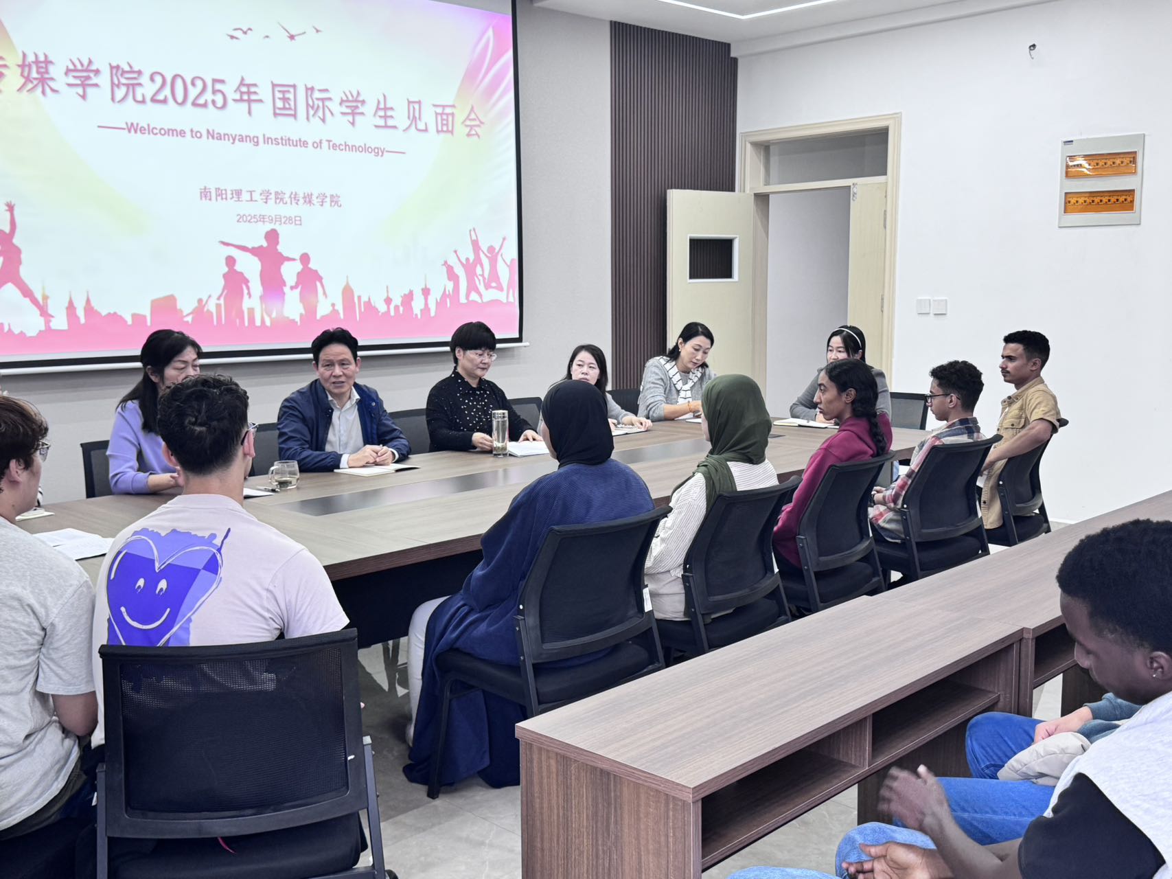 本网讯(特约记者/云小函)9月28日,传媒学院在会议室举办留学生见面会。传媒学院院长李存,副院长王焕玲及部分留学生任课老师出席,见面会由传媒学院党委书记刘书营主持。