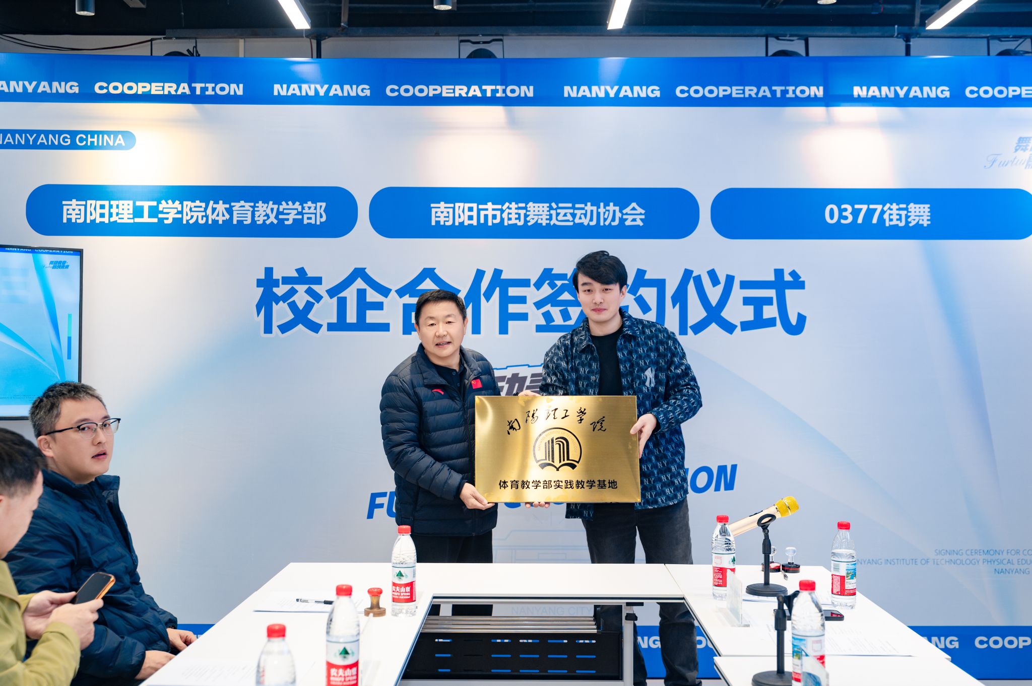 本网讯(特约记者/徐驰)11月6日上午,体育教学部与南阳市街舞运动协会和0377街舞文化传播有限公司举行校企合作签约仪式。此次活动以“舞动青春,融创未来”为主题,标志着街舞这项充满活力与时尚气息的运动项目,将全面融入高校人才培养体系,为南阳高等教育的多元化发展与校园文化创新注入全新动能。