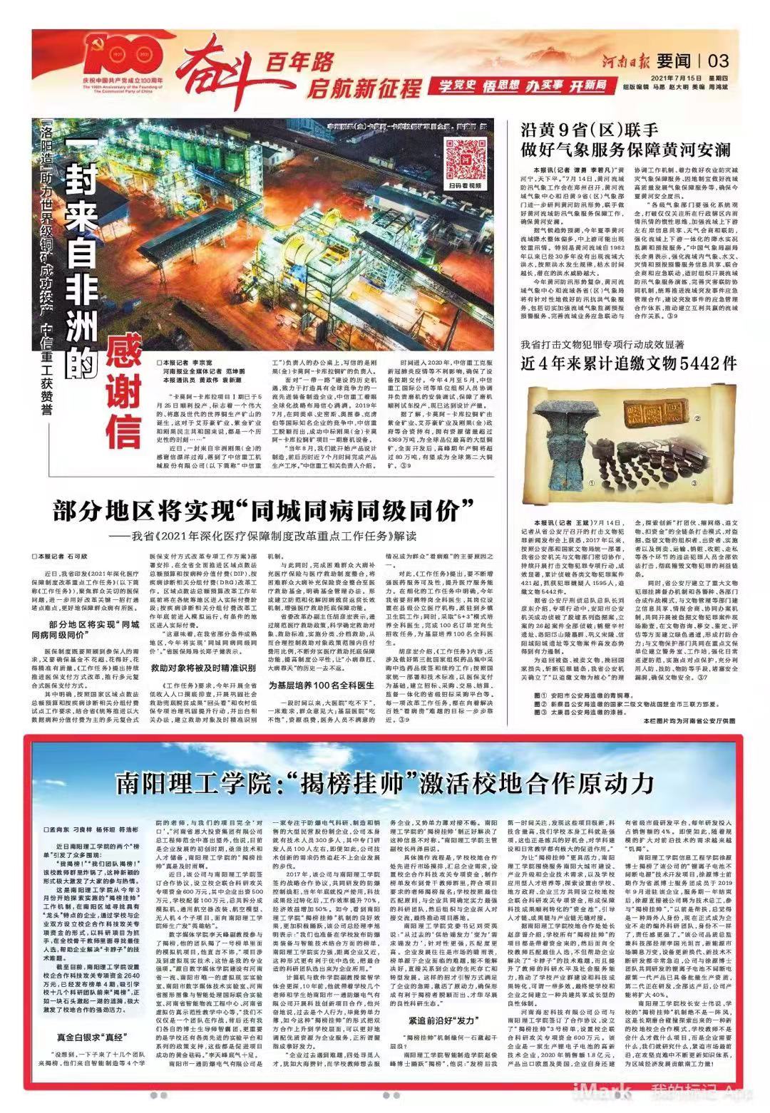 为让“揭榜挂帅”更具活力,安博官方网页版围绕服务南阳大城市建设、产业升级和企业技术需求,以及学校应用型人才培养等,探索设置由学校、地方政府、企业三方共同设立校地校企联合科研攻关专项资金,形成保障科技成果顺利转化的“资金池”,引导人才链、成果链与产业链无缝对接。