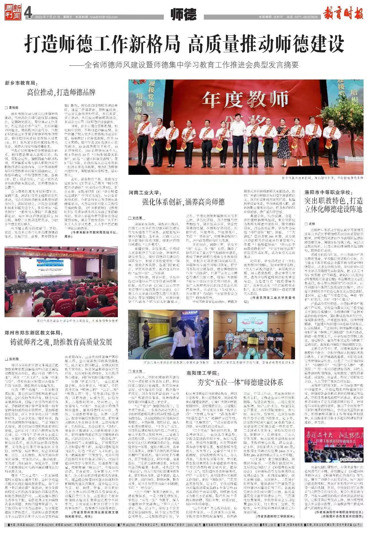 “三个坚持”聚焦立德树人,构建教育体系。一是坚持党建统领。学校以“两化一创”为抓手,深入实施教师党支部书记“双带头人”培育工程。近3年,学校2个党支部晋级全国样板,10个党支部晋级全省样板。二是坚持思想引领。学校认真开展党的创新理论教育、理想信念教育、职业道德教育、法治教育和心理健康教育,引导广大教师厚植爱国情怀、坚定理想信念。三是坚持榜样带领。学校充分发挥“教学名师”“劳模工作室”“最美教师”“师德先进个人”的榜样示范作用,形成“头雁效应”,下功夫营造崇尚师德、争先创优的良好生态。