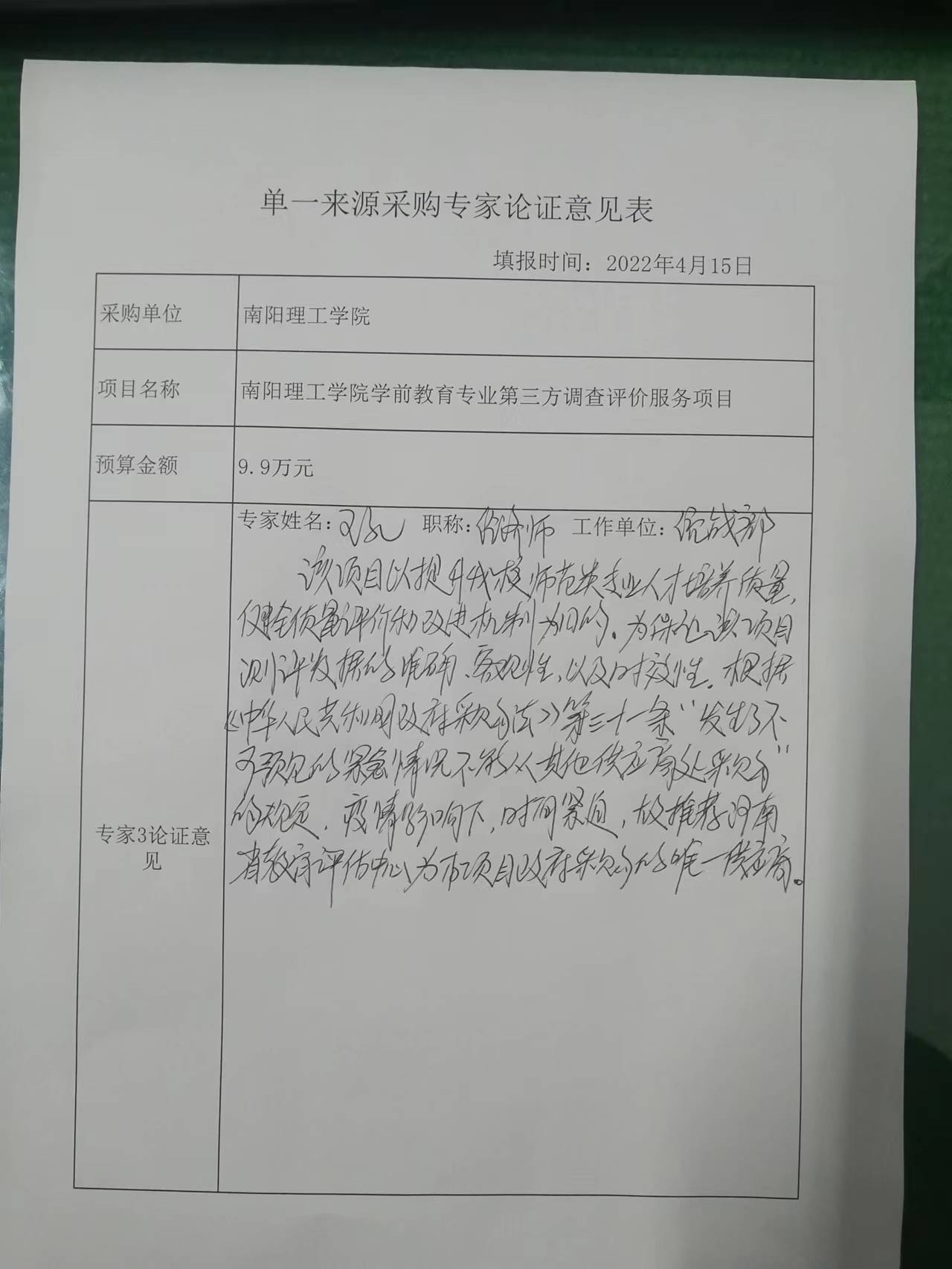 该项目是以提升我校师范类专业人才培养质量,健全质量评估和改进机制为目的,为保证该项目测评数据的准确性、客观性、以及时效性。就目前一是认证时间紧迫,二是受到国内、省内疫情防控形式影响,根据《政府采购法》第三十一条第二款之规定的“发生了不可预见的紧急情况不能从其他供应商处采购的”要求,符合单一来源方式采购的条件。单一来源供应商为:河南省教育评估中心。