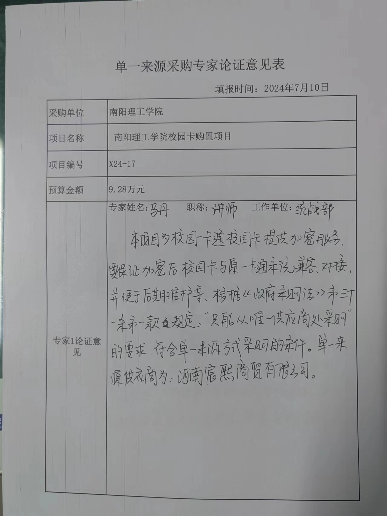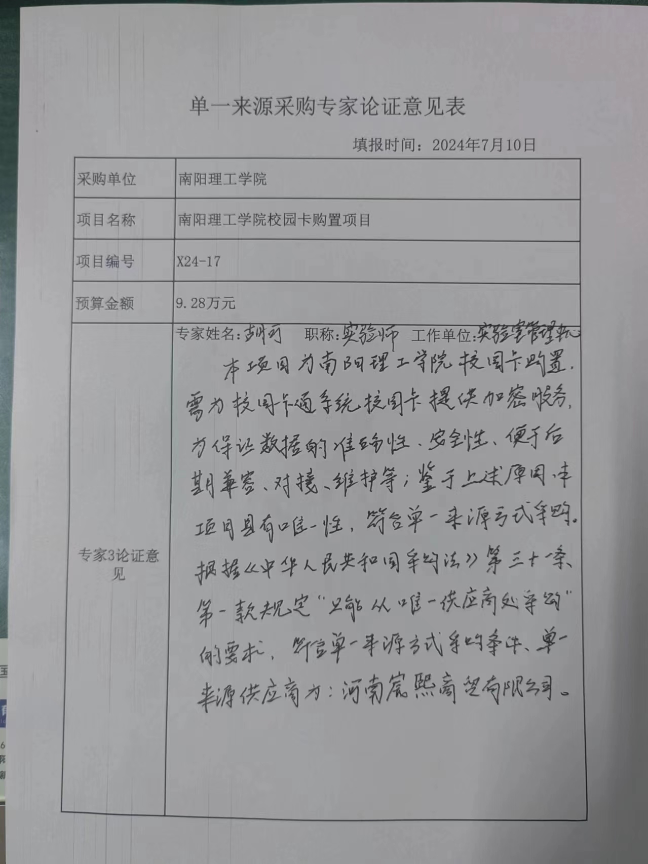 我校校园一卡通系统是由新开普电子股份有限公司建设,本项目需为校园一卡通系统校园卡提供加密服务,为保证加密后的校园卡与原有一卡通系统无缝兼容和无缝对接,便于后期维护等。因此该项目来源单一,根据《中华人民共和国政府采购法》第三十一条第一款之规定的“只能从唯一供应商处采购”的要求,符合单一来源方式采购的条件。单一来源供应商为:河南宸熙商贸有限公司。 |
